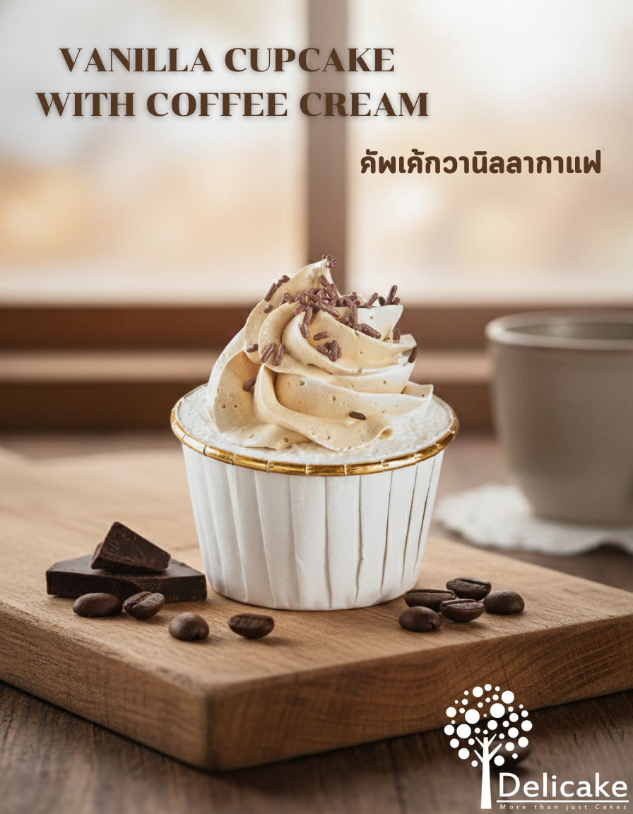“ยกระดับช่วงเวลาพักผ่อนของคุณด้วย ‘คัพเค้กวานิลลากาแฟ’ สุดละมุน ☕️🧁 เค้กวานิลลาเนื้อนุ่มชุ่มฉ่ำหอมกรุ่น ที่ถูกเบลนด์เข้ากับความเข้มข้นหอมๆ ของกาแฟคั่วบดอย่างลงตัว สร้างรสชาติที่หวานนุ่มแต่มีมิติความหอมของกาแฟซ่อนอยู่ ปิดท้ายด้วยบัตเตอร์ครีมกาแฟเนื้อเนียนละมุน ที่แต่งเติมความหวานมันให้สมบูรณ์แบบในทุกๆ คำที่ตักเข้าปาก ความหวานของวานิลลาและความหอมของกาแฟผสานกันได้อย่างลงตัว ไม่หวานจัด ไม่ขมเกินไป เป็นขนาดที่พอดีสำหรับความสุขส่วนตัว ที่เติมเต็มความสดชื่นและทำให้วันของคุณพิเศษยิ่งขึ้นกว่าเดิม!”