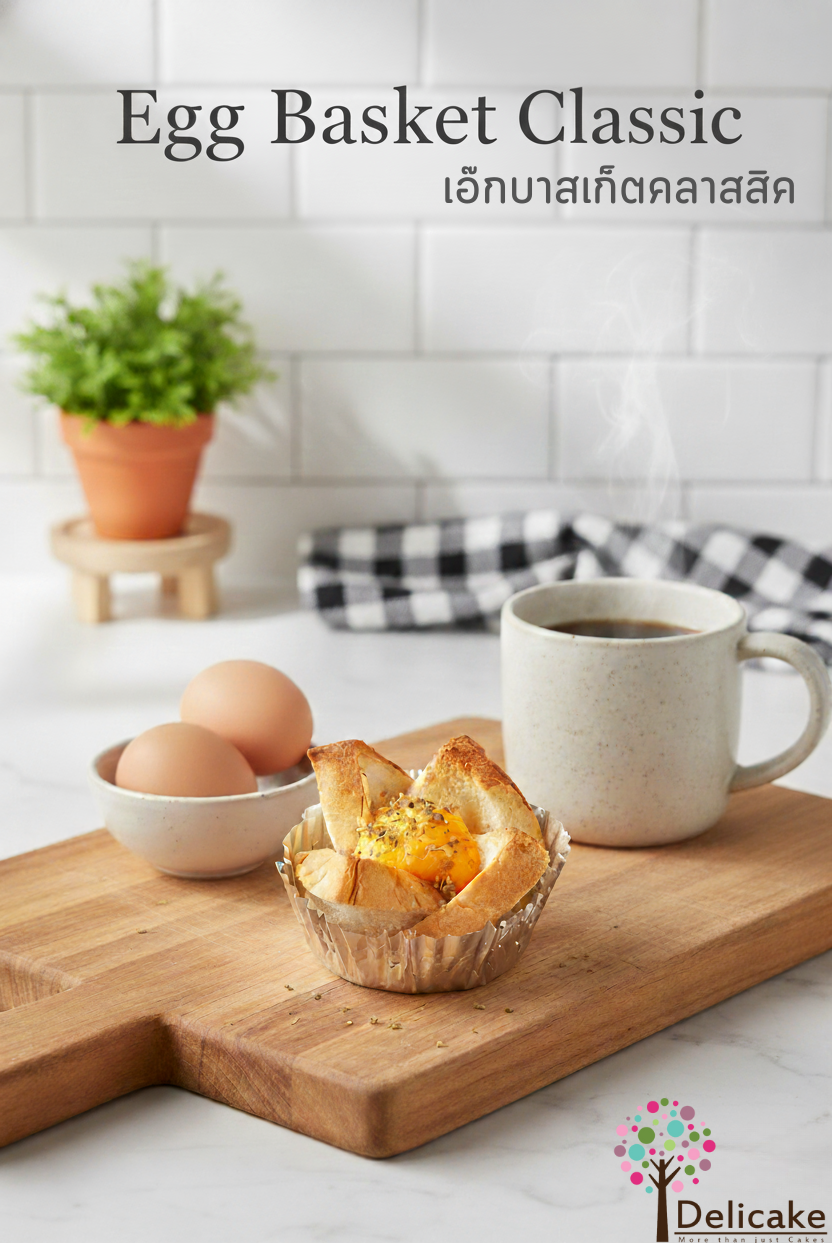 “เริ่มต้นวันใหม่ด้วยความคลาสสิกที่ลงตัวที่สุด! ขอเชิญพบกับ ‘เอ๊กบาสเก็ตคลาสสิก’ เมนูที่เรียบง่ายแต่เต็มไปด้วยความสุข เราใช้ ขนมปังโฮมเมดเนื้อนุ่ม บรรจงทำเป็นรูปตะกร้า แล้วเติมความอร่อยด้วย ไข่ไก่สดใหม่ ที่ถูกอบอย่างพิถีพิถันจนสุกกำลังดี